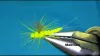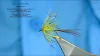 Olive Thread 8/0 Tail Holo Tinsel Fluro Yellow Soft Dubbing Creamy White Organza Ribbon for Body Sooty Olive Deer Hair + Yellow Partridge Feathers for Head