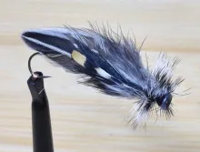 Body White strung Chinese saddle hackle; used feathers from top as well as bottom marabou